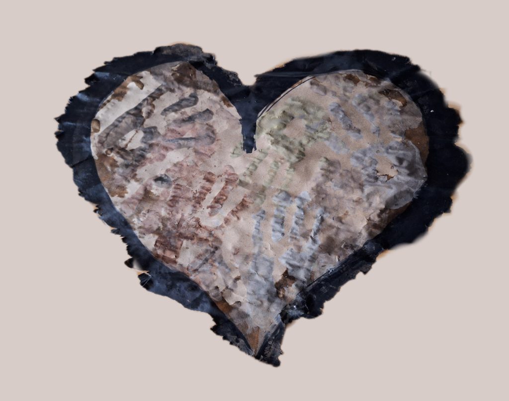 Two homeless gals became my friends and this is a painting inspired by them. Originally there was only going to be one hand outstretched, but when feeling takes over, art becomes more meaningful. The black heart was initially intended to be a crease in the blanket.