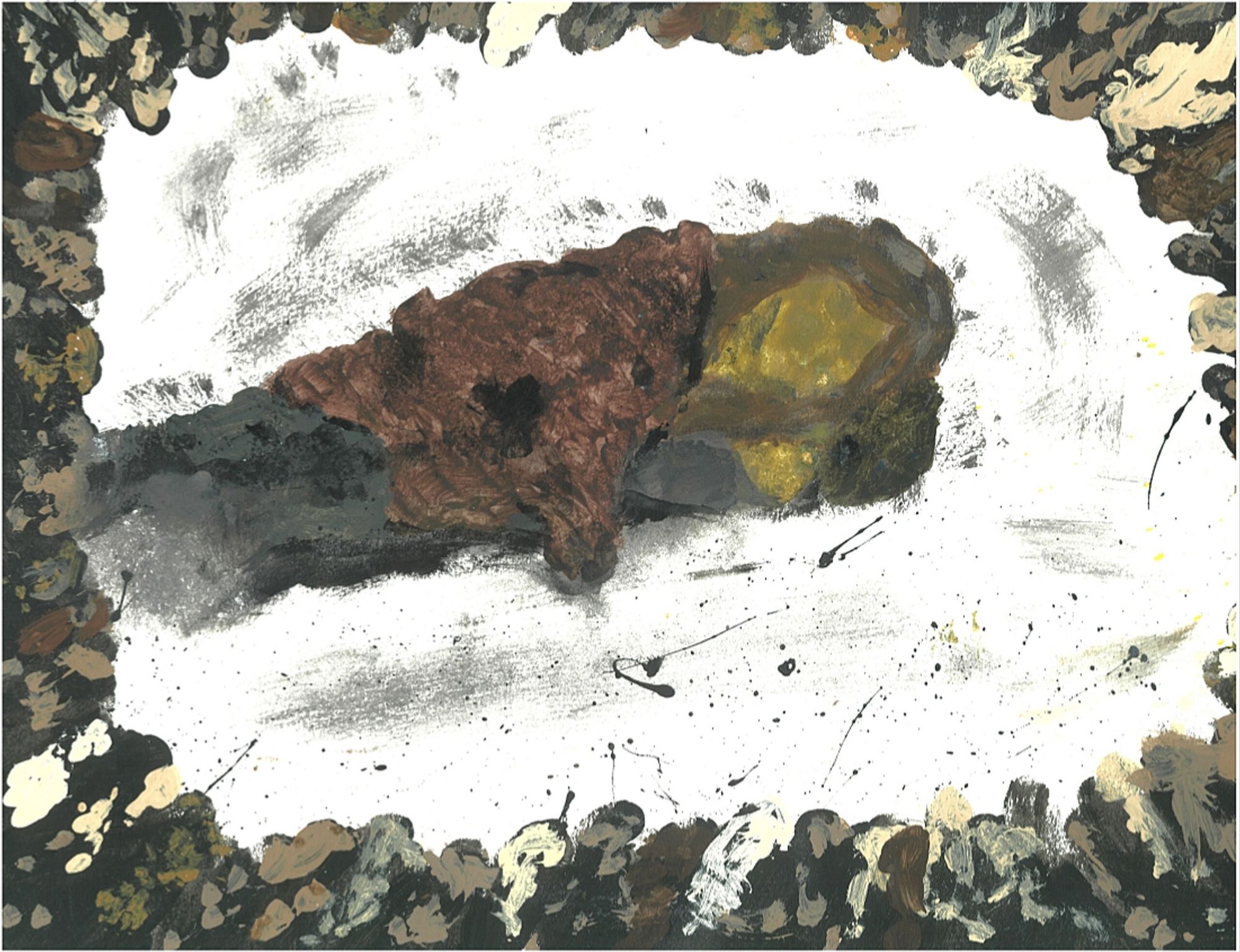 The artist’s younger sister was diagnosed with cancer at age 9. She recieved several surgeries, and when she was a young adult, the metal from one of her first surgeries corroded through an artery in her neck. She was life flighted to Seattle because she was coughing up massive amounts of blood. In desperation as an artistic expression of prayer, this painting was created. Her sister is happy, healthy, and well now.